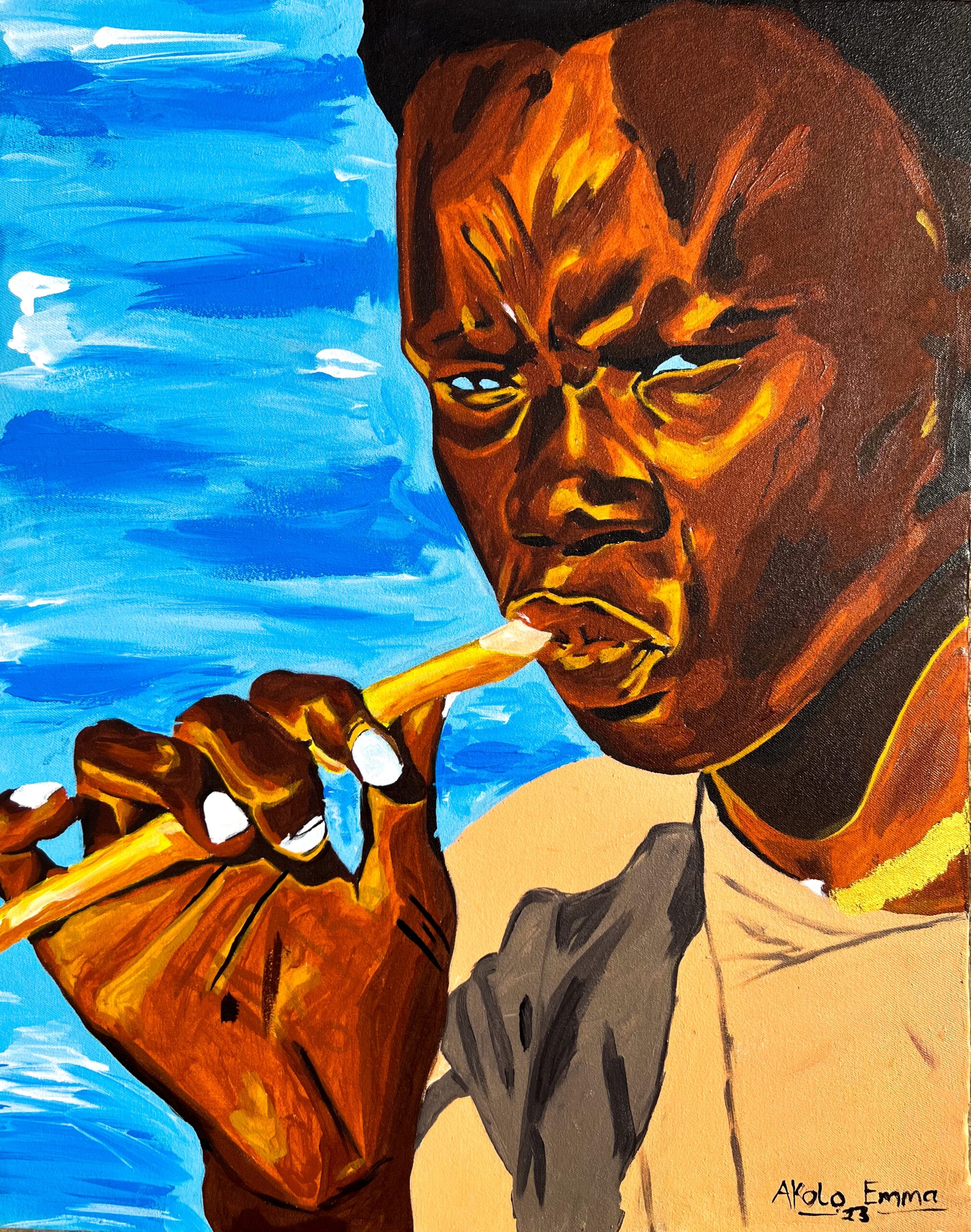 The portrait “How Bad Could It Be” captures a profound moment of careful, almost ritualistic preparation before a boy steps out into the world. He is engrossed in the simple, deliberate act of using the traditional chewing stick, yet his focus is entirely fixed on the horizon outside the frame. His intense, questioning gaze reveals a young mind assessing the day’s potential for hardship and challenge.